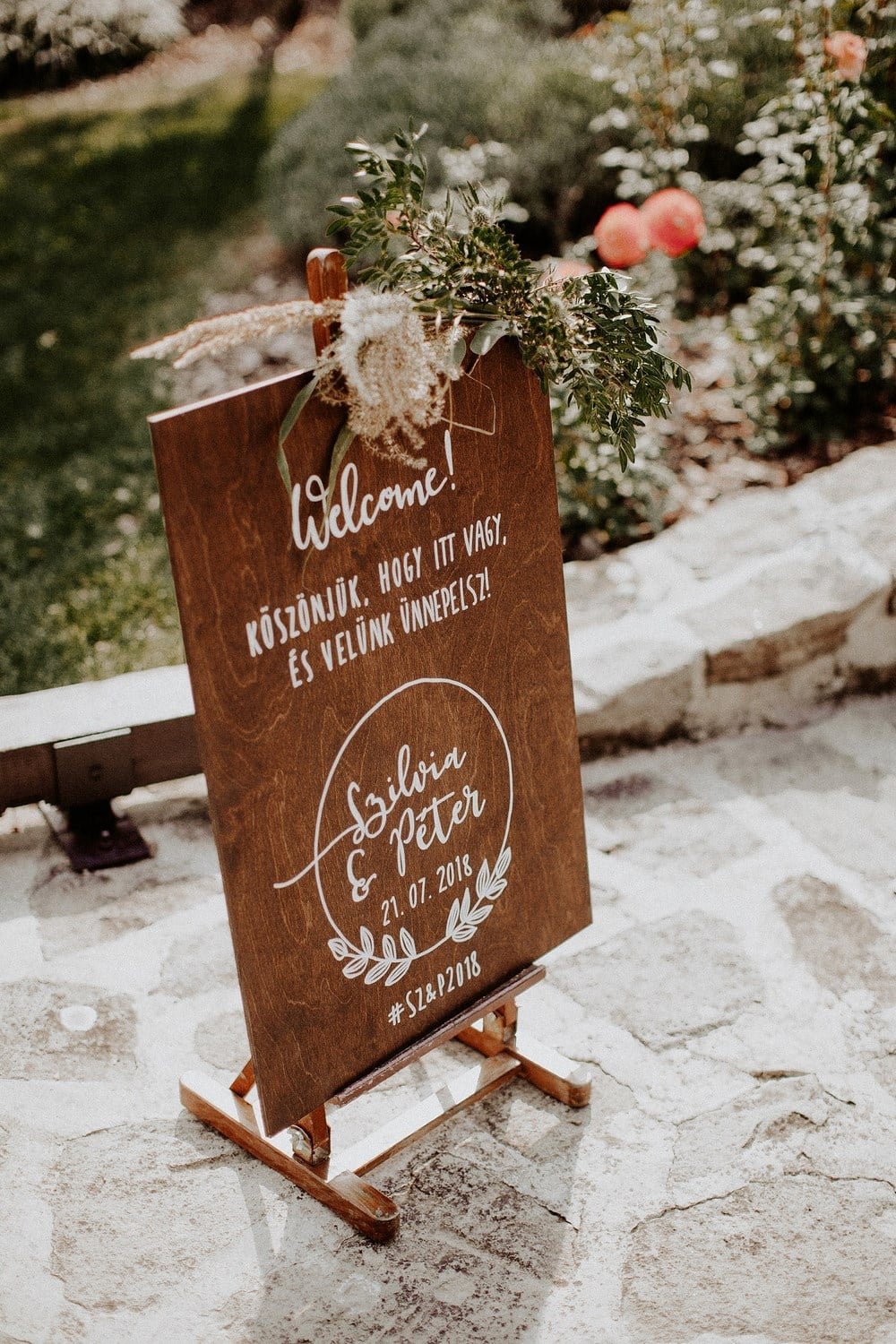 A vendégvárás és a szertartás egy varázslatos magánkertben zajlott, tele kreatív installációkkal, amelyek még inkább különlegessé tették a pillanatokat.