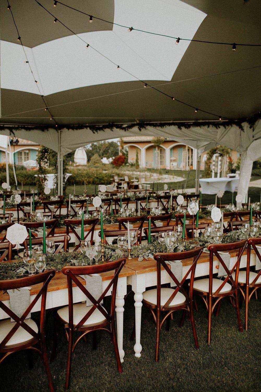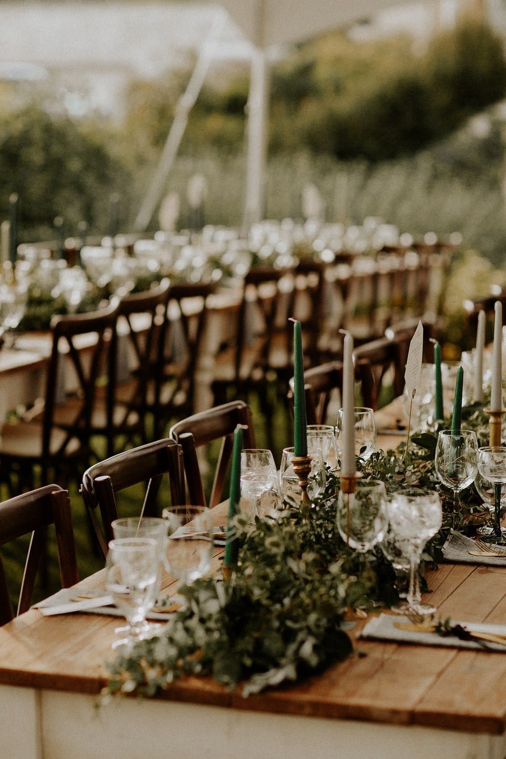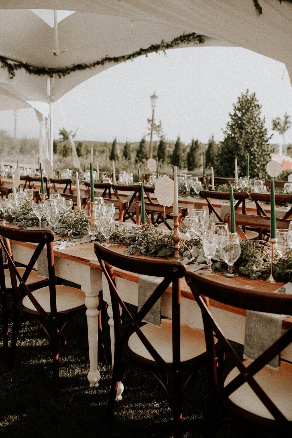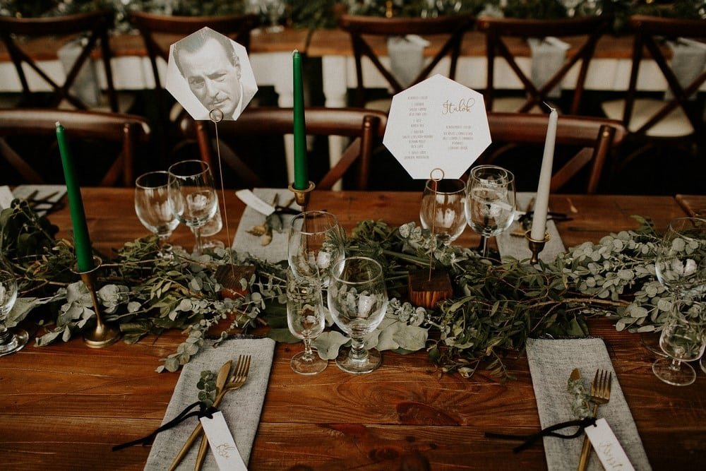 Újdonságként jelent meg a zöld futó, amely az asztaldekoráció részeként először szerepelt ezen az esküvőn, és valóban friss, modern vonalat hozott a régies hangulat mellé.