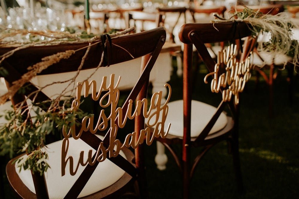 A székekre egyedi, kivágott szöveget helyeztünk, és a gyerekek sem maradtak kreatív élmény nélkül – számukra egyedi színezőket és különféle érdekességeket tartalmazó befőttes üvegeket készítettünk.