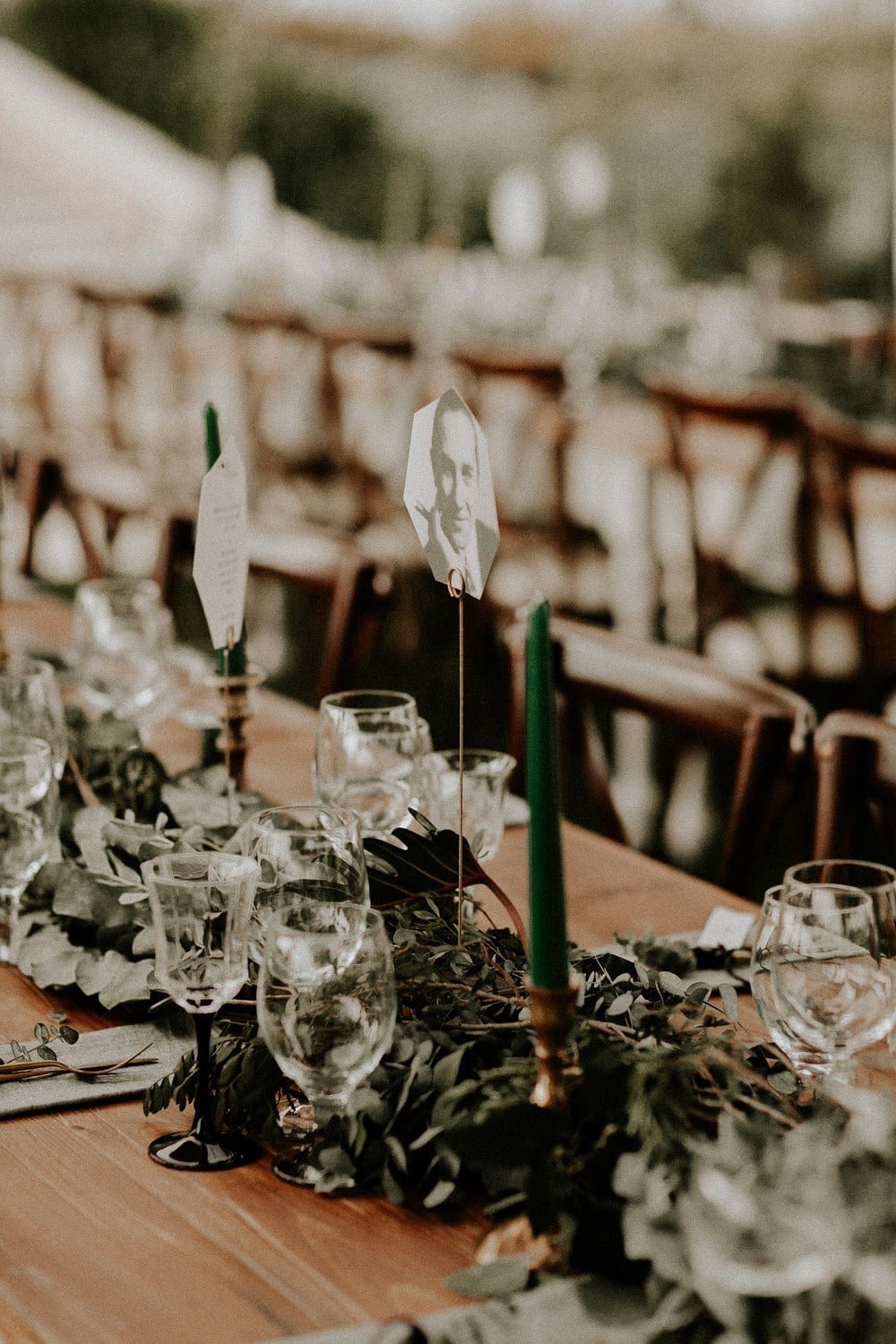 A poharak is egyediek voltak: mindegyik kristálypohár régi stílusú, elegáns darab, ami tökéletesen illeszkedett a rendezvény hangulatához. Minden teríték különbözött, így minden vendég számára egyedi élményt kínáltunk, amikor leültek az asztalhoz.