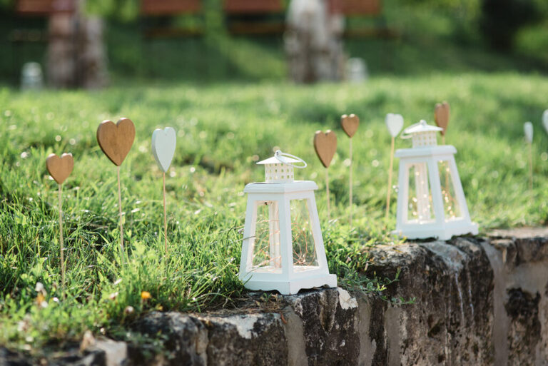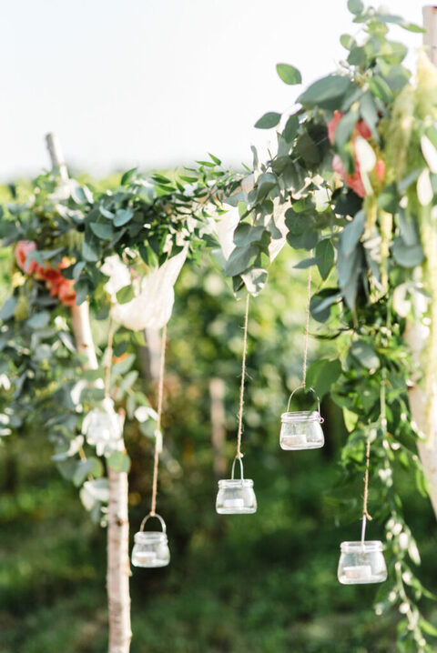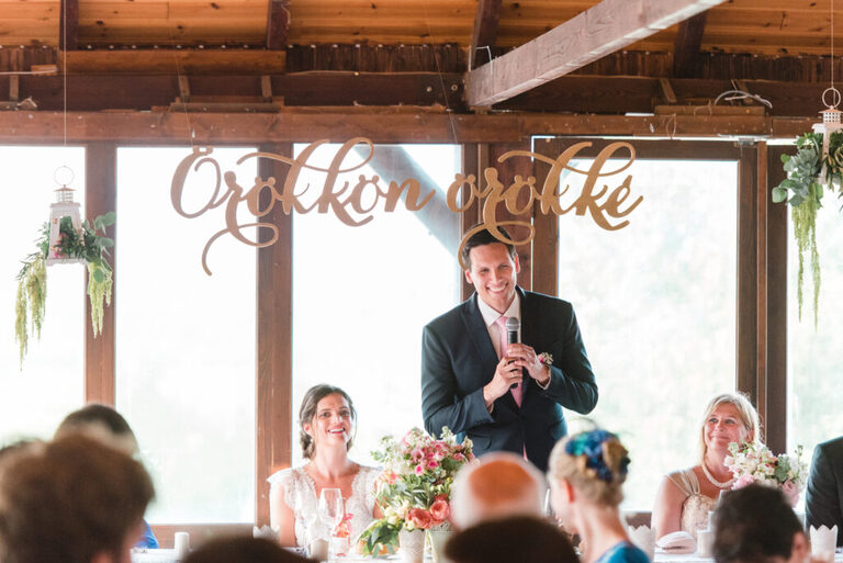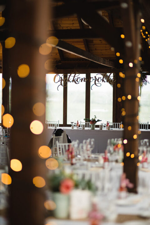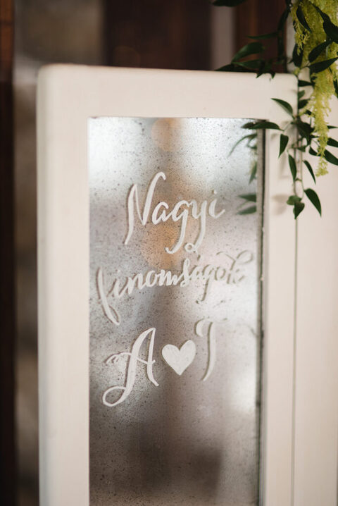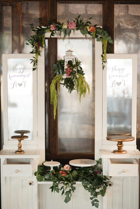 A főasztal felett egy „Örökkön örökké” felirat lógott, amit lámpásokba ültetett virágokkal egészítettünk ki.