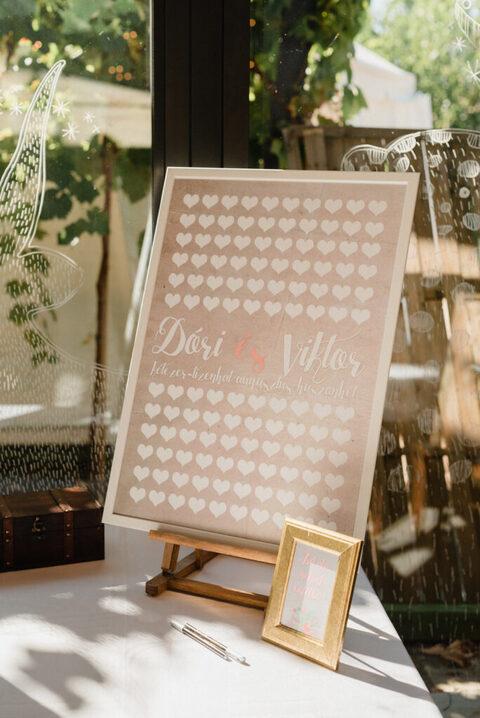 Egyik kedvencem a jókívánságkártyák voltak, amiknél a vendégek feladata volt, hogy a kitöltsék, ezzel üzenve a Párnak. Ezt a pár az esküvő végén hazavitte és másnap visszagondolva a Nagy Napra elolvashatta. :)