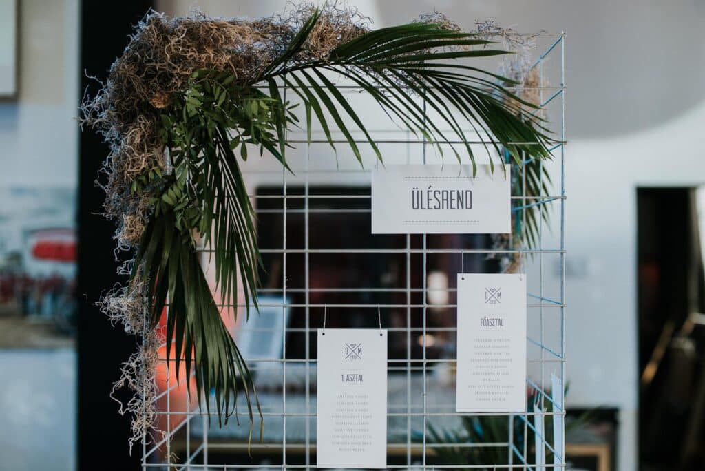 A dekoráció során minden apró elem tudatosan lett megtervezve, hogy egységes és karakteres loft esküvő szülessen.