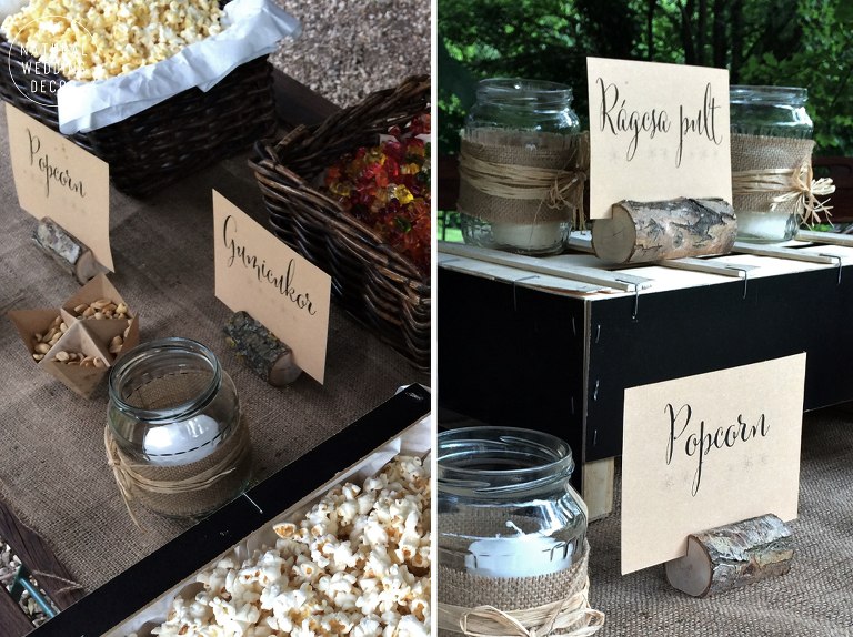 Nagyon szeretem a különböző bárokat, szuper kis fényfoltjai az esküvőknek, úgyhogy itt is nagyon lelkes voltam a „Rágcsa pult” ötletért, egyszerűen imádtam. :)