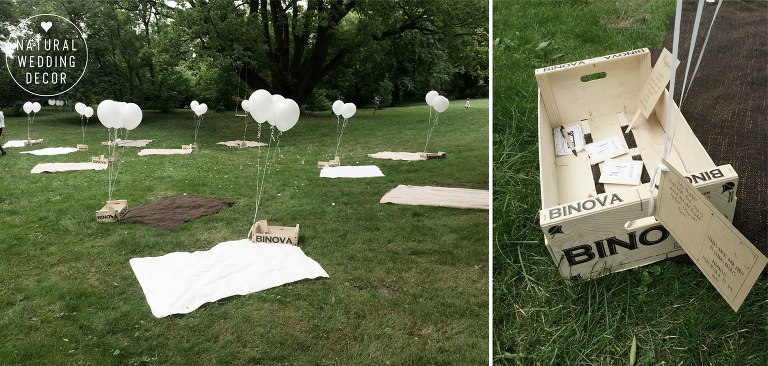 Ezekre a ládákra kötöttük a képeslappal ellátott lufikat is, amiket a szertartás után elengedtek, hátha visszaküldi nekik valaki.