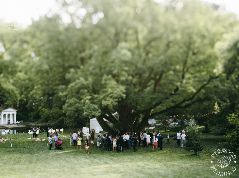 Az esküvő helyszíne a pusztazámori kastély volt. A vendégeket rögtön leinvitálták a kertbe.