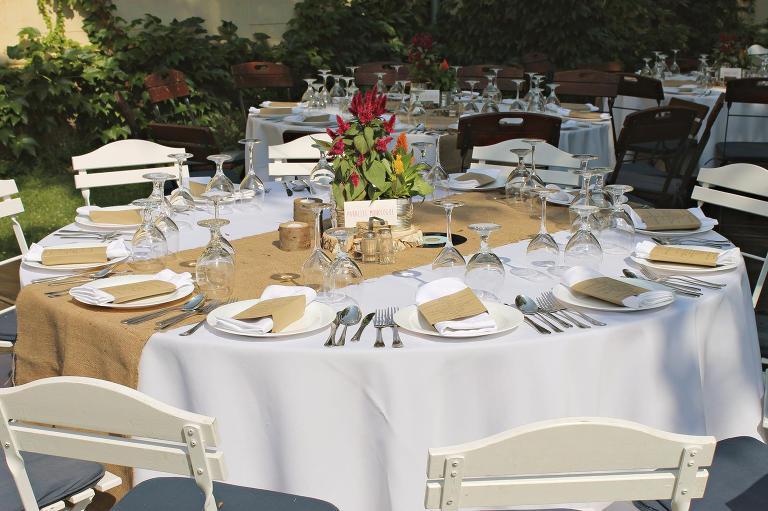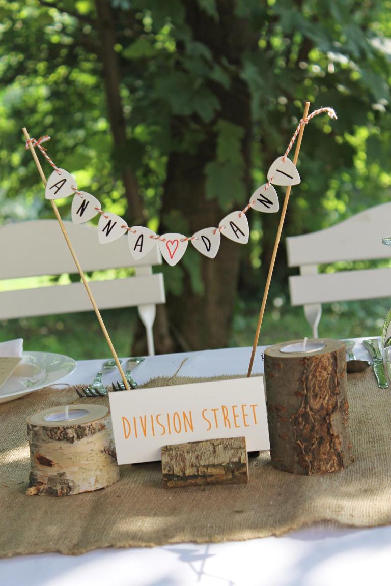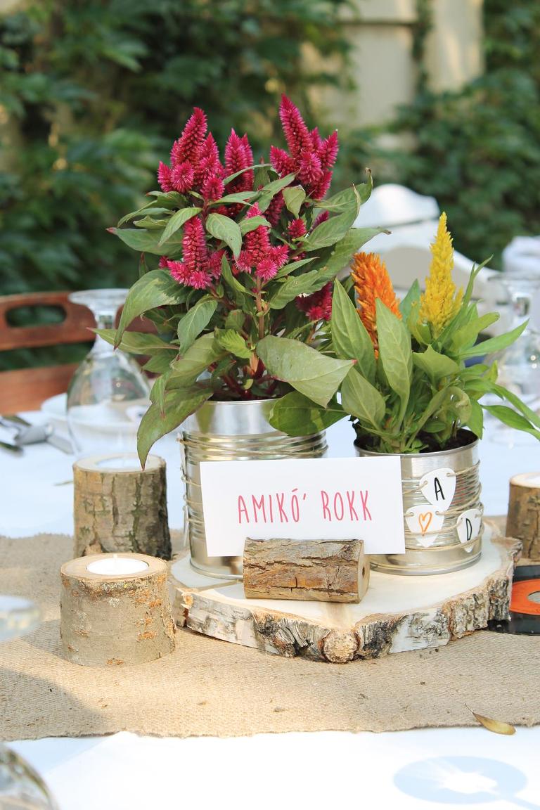 Az asztalokat is minél egyszerűbbre és lazábbra szerettük volna, a kedvenceim a konzervdobozok, és a rájuk kötött monogramos gitárpengetők voltak.