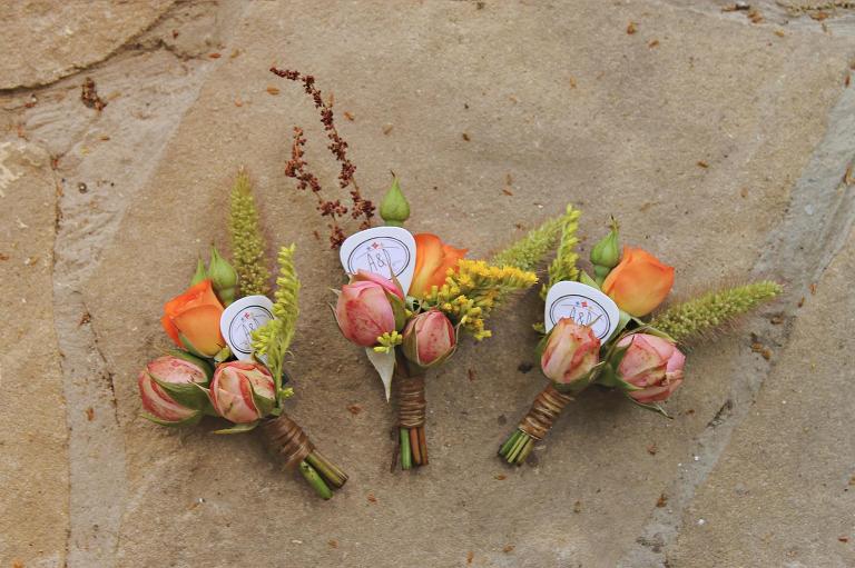 Anna színes csokrot szeretett volna, a fiúk kitűzőjét pedig a szokásos kiegészítővel dobtuk fel. :)