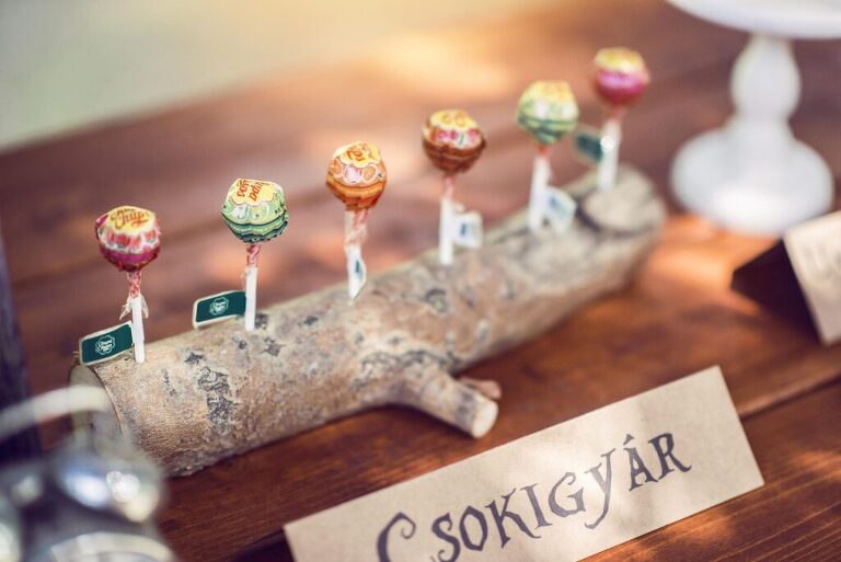 A desszertasztalt a Charlie és a csokigyár ihlette, de volt Beetlejuice-os limonádé bár és Halott menyasszonyos köszönőajándék is.
