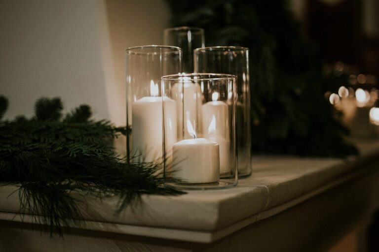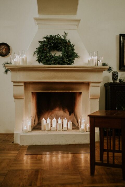 A szertartás bent volt a kastélyban, egy nagy kandalló előtt, amire sok-sok gyertyát és egy nagy fenyőkoszorút raktunk.