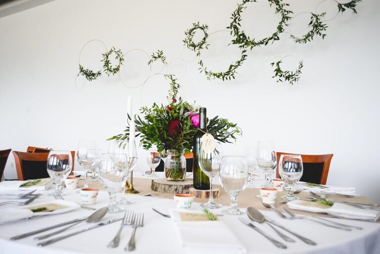 ESKÜVŐI TEREM DEKORÁCIÓ RÉSZLETEI A BORÁSZATBAN