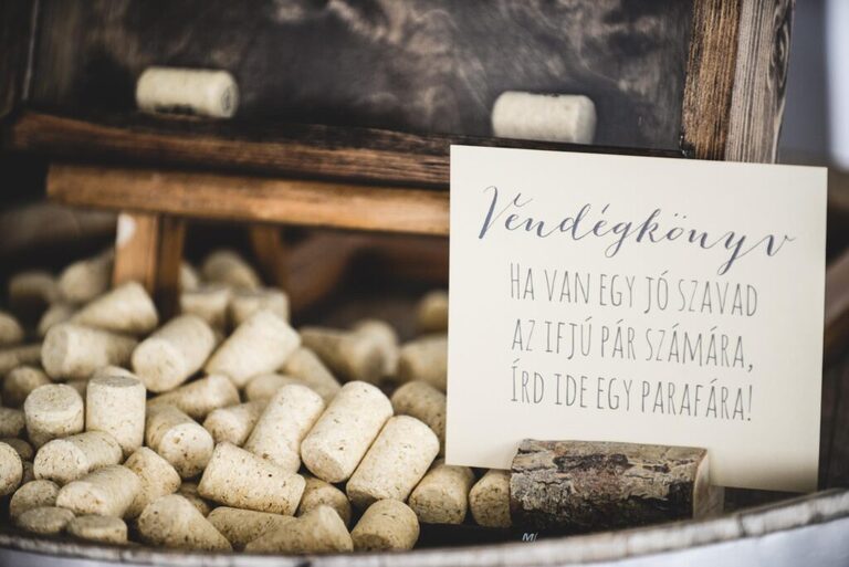 Az esküvő helyszíne, ahogyan írtuk egy borászat volt, így a parafadugó egy visszatérő motívum lett, nagyon illett a helyszínhez.
