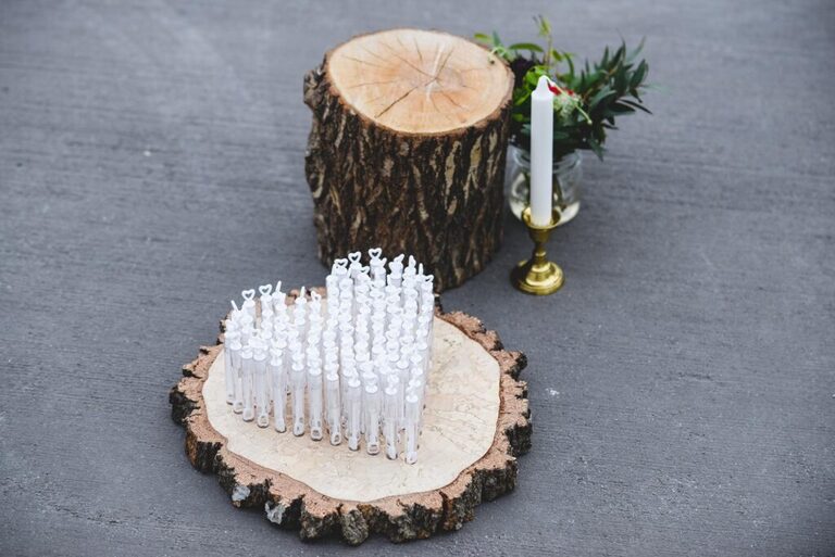 A szertartás végén a vendégek buborékfújokat kaptak, ezeket egy szívecske formában kifúrt fakorongba helyeztük ki.