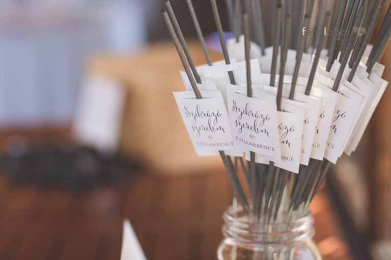 Az esti tortázáshoz csillagszókkal is készültünk, amin egy kis papírkára volt írva a “szikrázó szerelem” kifejezés, illetve táblát is készítettünk hozzá. :)