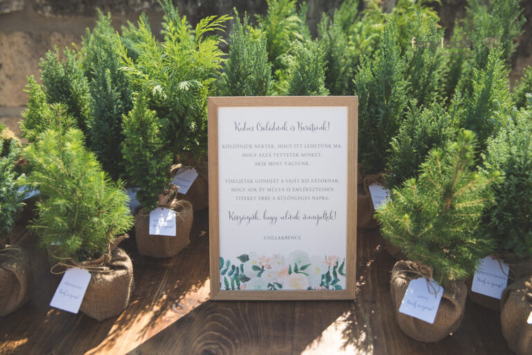A köszönőajándékok kis növények voltak, ezeket egy külön részen kihelyeztük, innen pedig a vendégek vehették el egyesével.