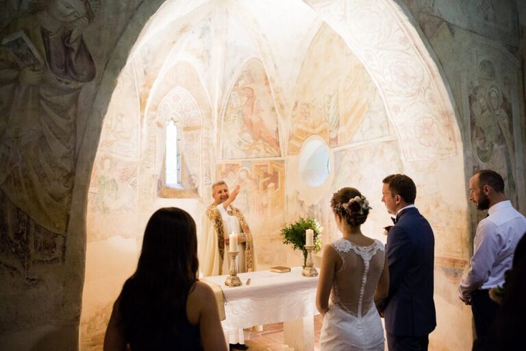 Fanni és Fabian templomi esküvőjüket egy nagyon kicsi, régi templomban tartották, nagyon hangulatos volt.