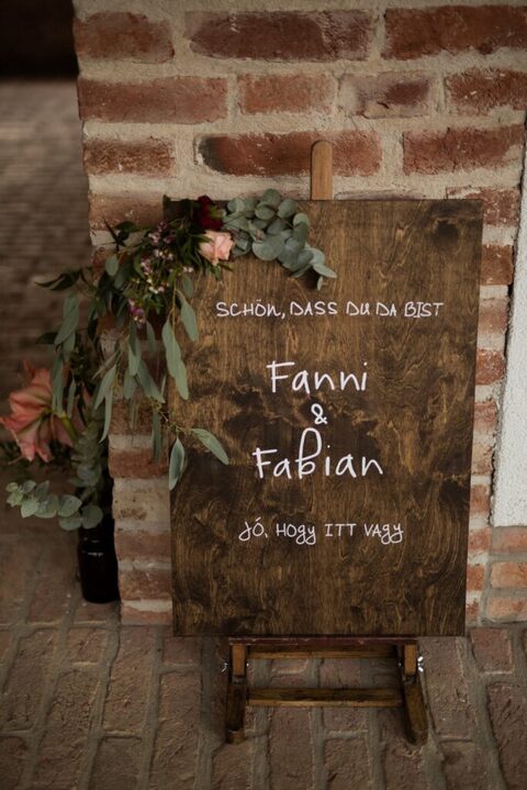 Esküvőjük egy kisebb esküvőnek számított, a kiírásokat mindenhol magyarul és németül is feltüntettük, hiszen a vendégek több országból érkeztek.