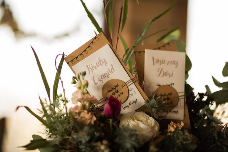 A terítéken összevont csomagok voltak, menü, köszönőajándék és a névkártya egyben volt. A virágmagoknak csináltunk egyedi csomagokat, ezen tüntettük fel a nevet is.