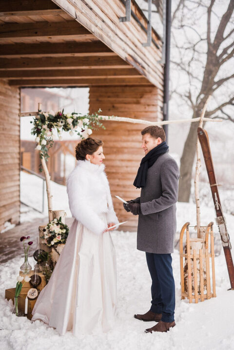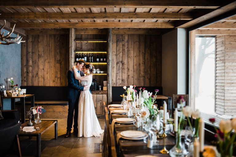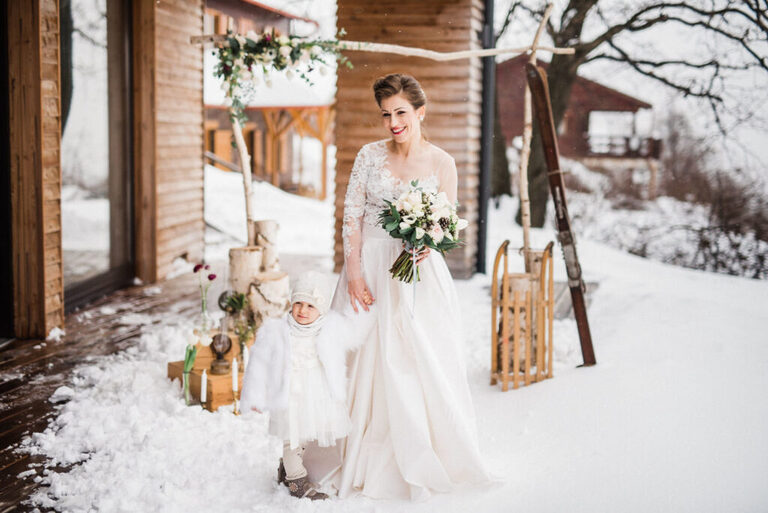 Anikó és Bence hegyi hangulatú esküvője Magyarország legmagasabban fekvő településén, Mátraszentistvánon került megrendezésre. Egy fehér, havas, téli esküvőt szerettek volna. Koncepcióban a tél kapcsán a fehér volt a fő szín viszont színes, téli virágokkal is vegyítettük a virághasználatot.