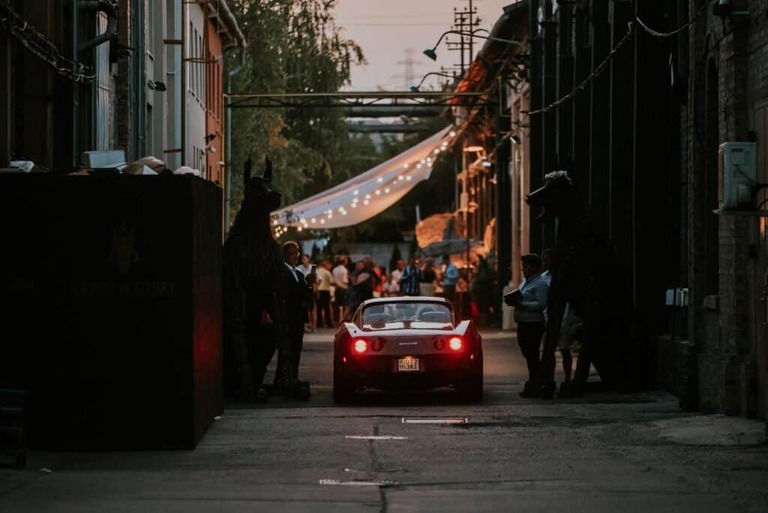 A Szőke M Gábor Stúdió ipari terei adták a helyszín alapját. A gyári környezetben található betoncsövek és olajos hordók már önmagukban is meghatározták a koncepciót. Ezeket kiegészítve olyan elemeket használtunk, amelyek kiemelték a loft atmoszférát, miközben megtartották az esküvői eleganciát.