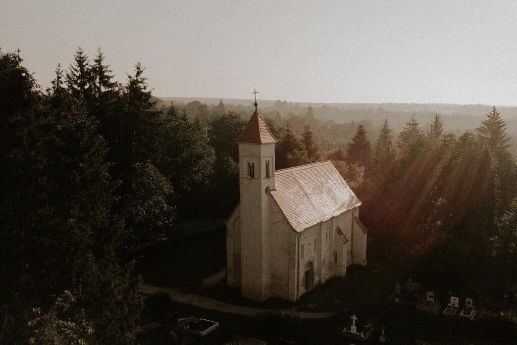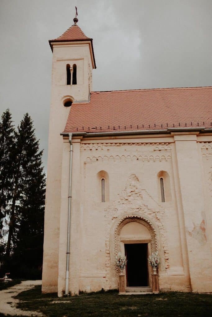 A templomi szertartással kezdődött a nap, hagyományos esküvő volt, ami azt jelentette, hogy a pár és a teljes násznép végig ment a falun a templomig.