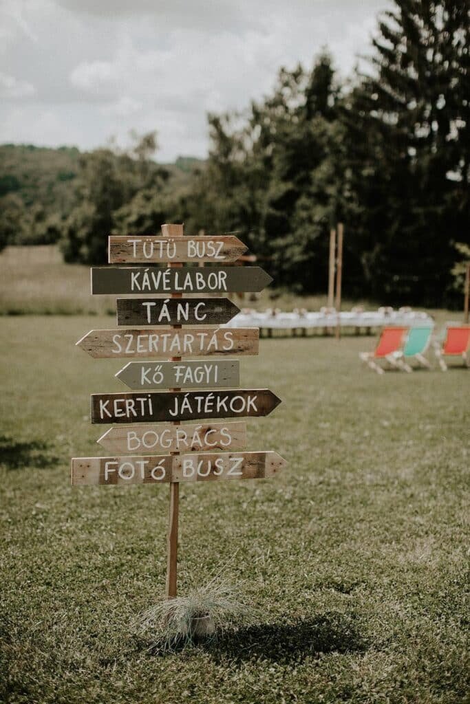 Volt egy kis fotóállomás, amit az egyik fára csináltunk, az volt a feladat, hogy mindenkinek ott volt a neve, és a vendégeknek a nevüket ki kellett cserélni egy kis polaroid képre. 🙂