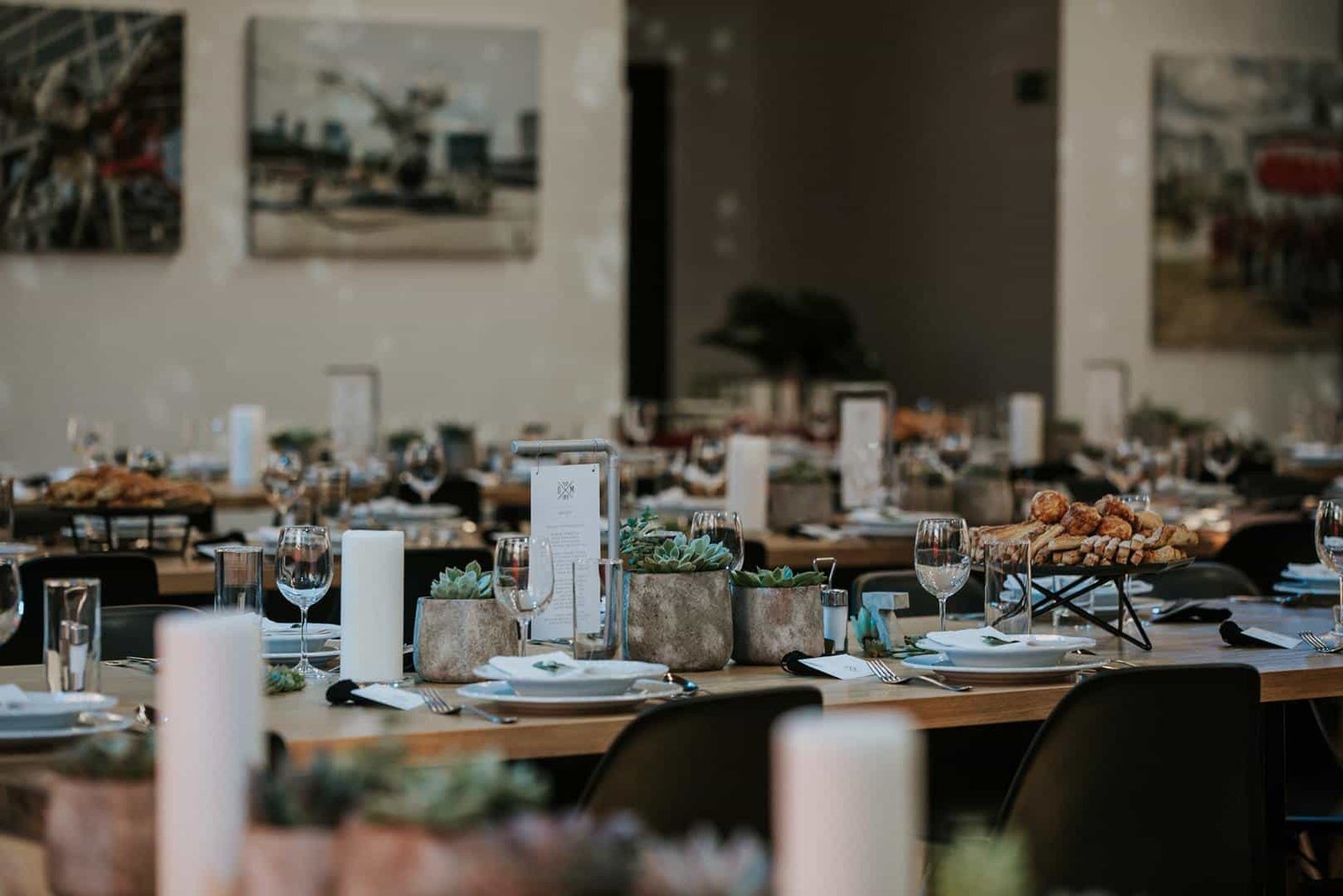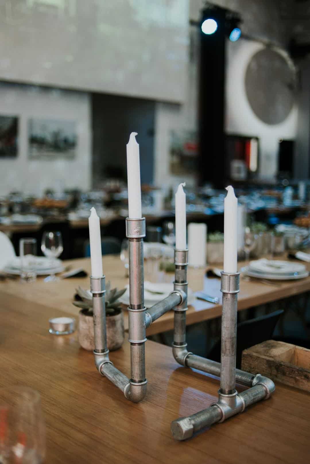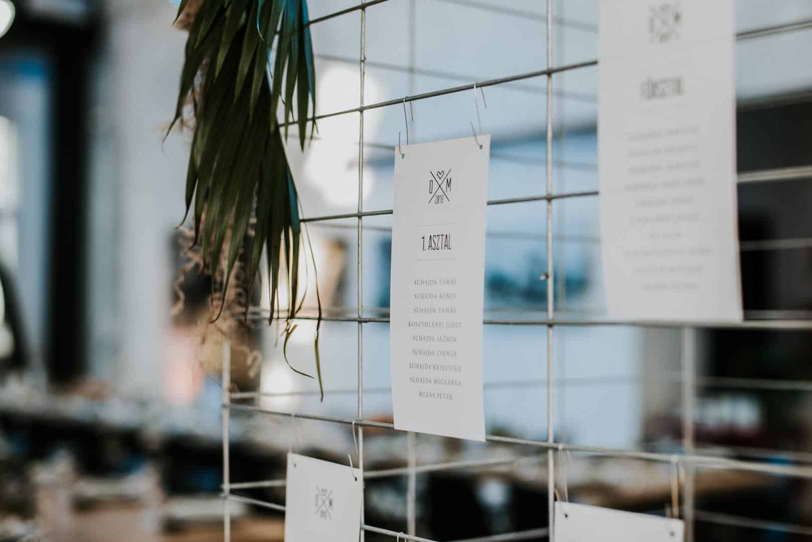 A dekoráció során minden apró elem tudatosan lett megtervezve, hogy egységes és karakteres loft esküvő szülessen.
