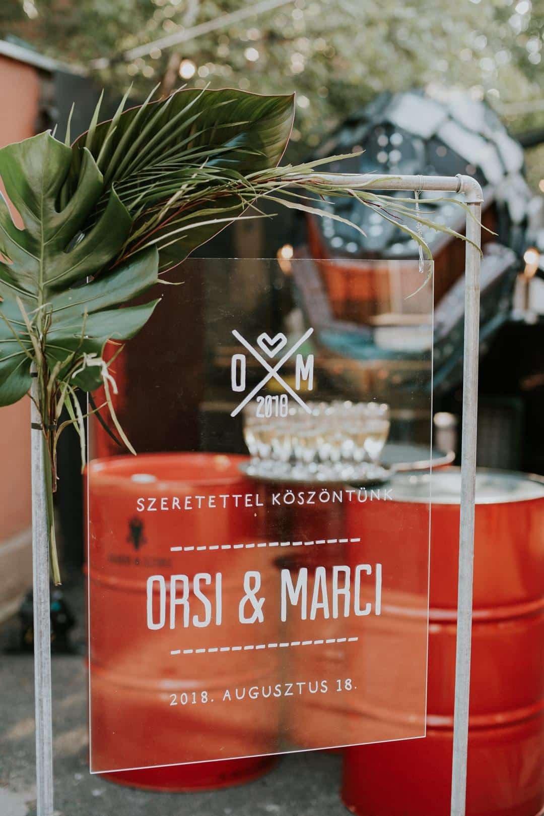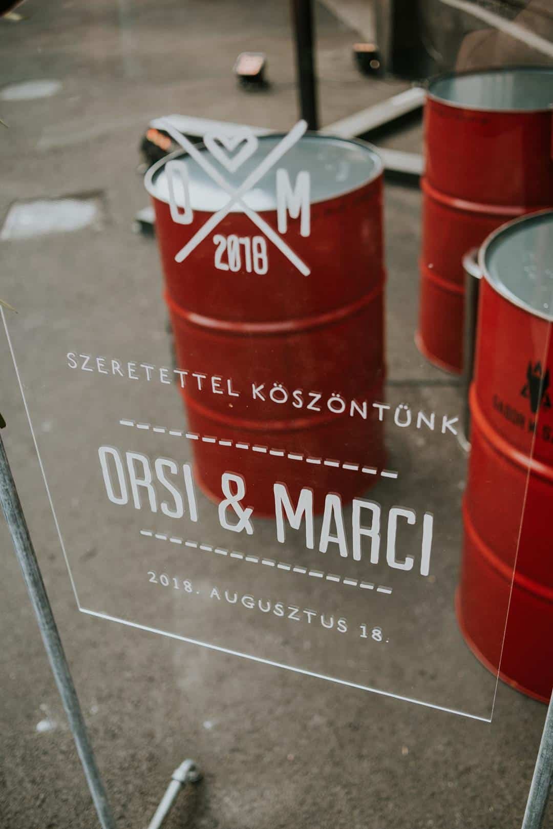 - Köszöntőtábla: modern plexi tábla, ami tökéletesen illeszkedett az ipari környezetbe.
