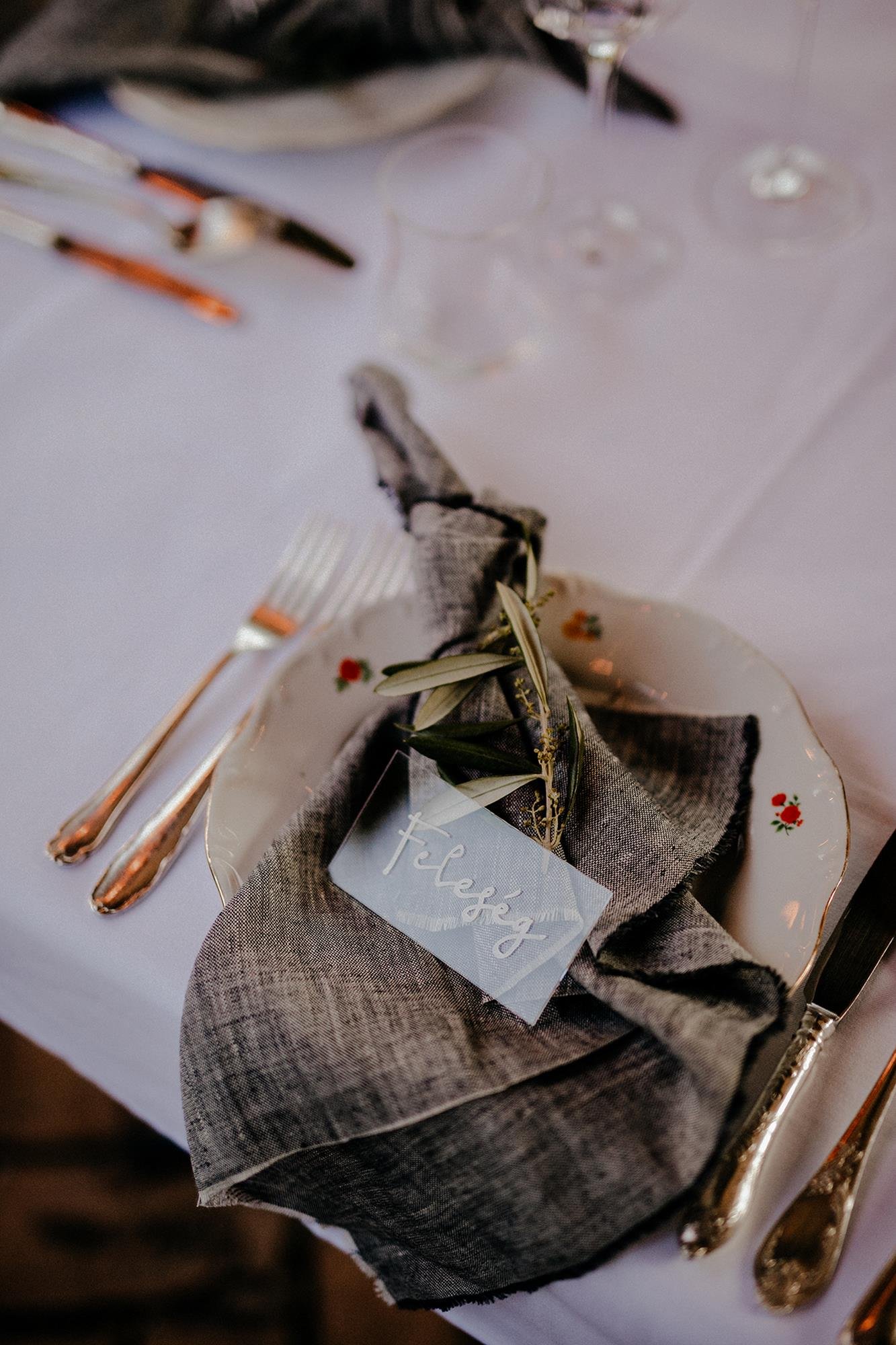 A névkártyákat is plexire írtuk, ez szuperül feldobta a dekorációt, illetve ezt a vendégek is haza tudták vinni ajándékba.