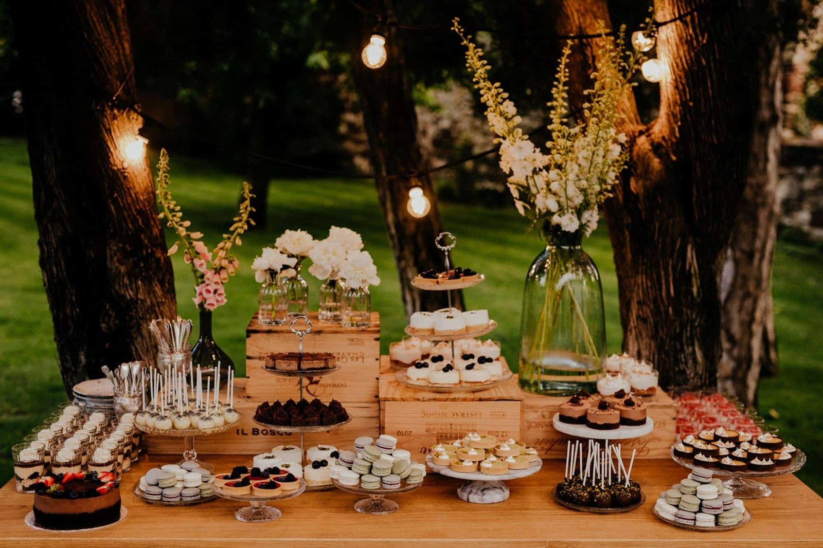 A desszertasztal gyönyörű dekorációs elemként szolgált, ahol természetesen a desszerteket Szandra és Levi készítette.